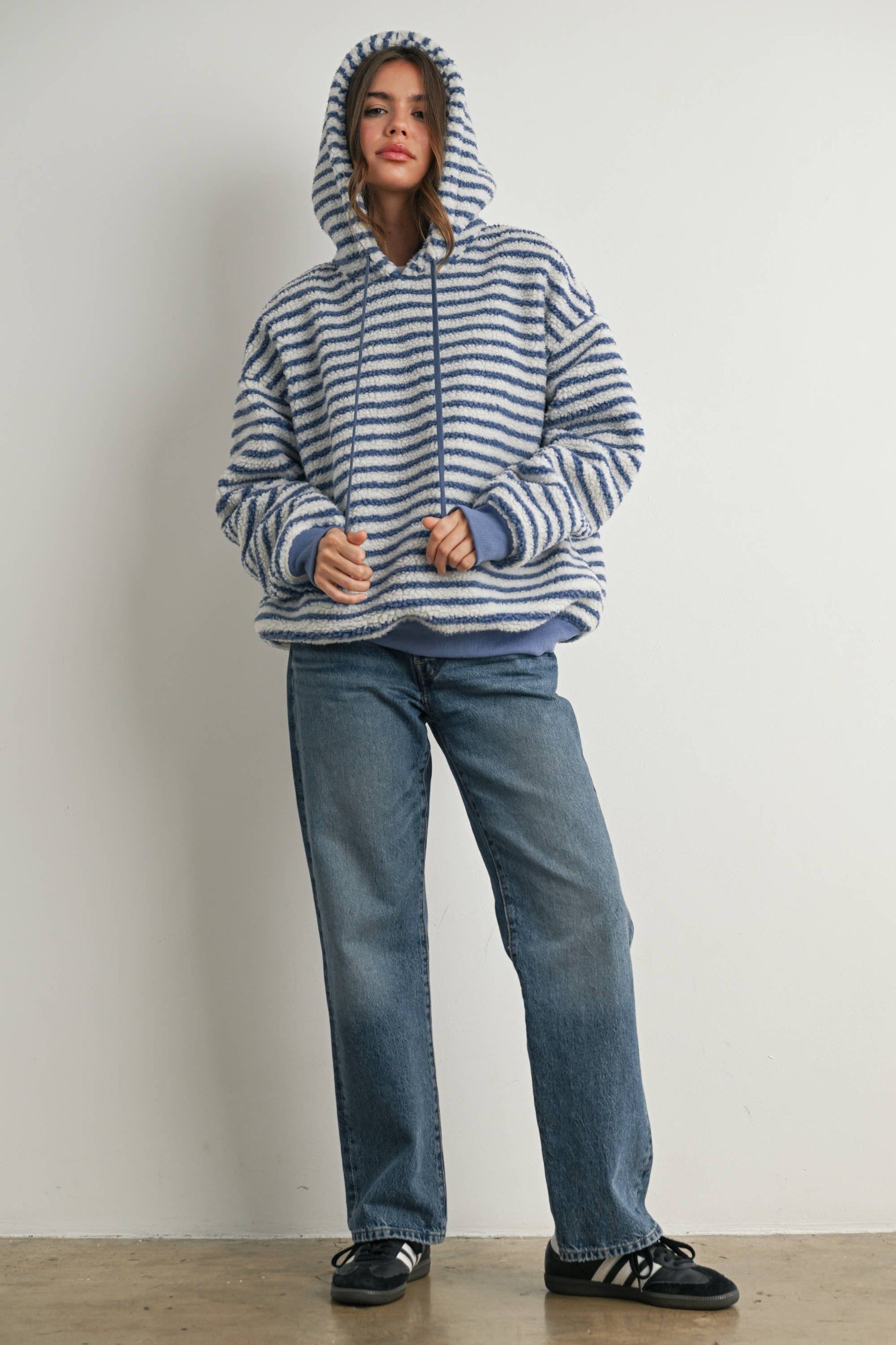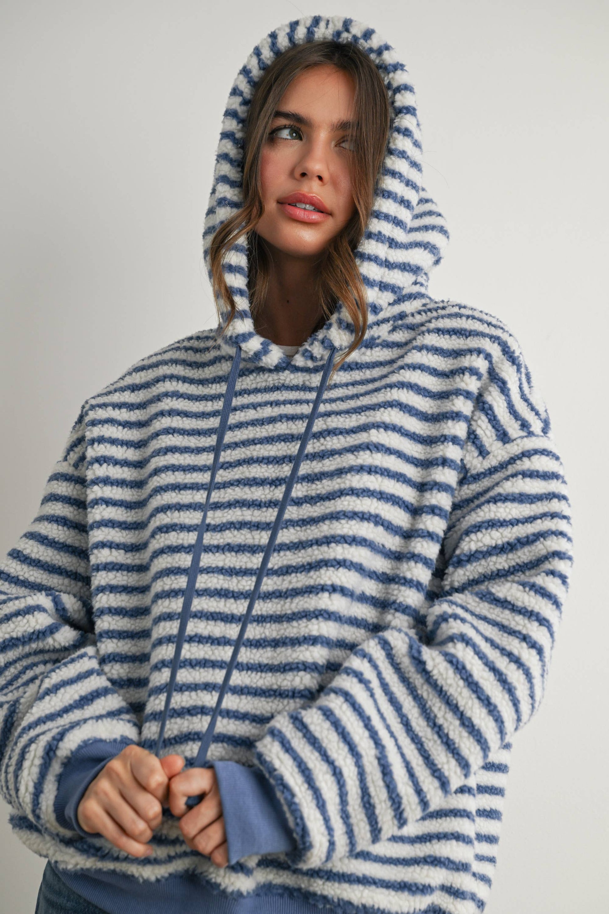 Brushed Striped Puffy Hoodie
